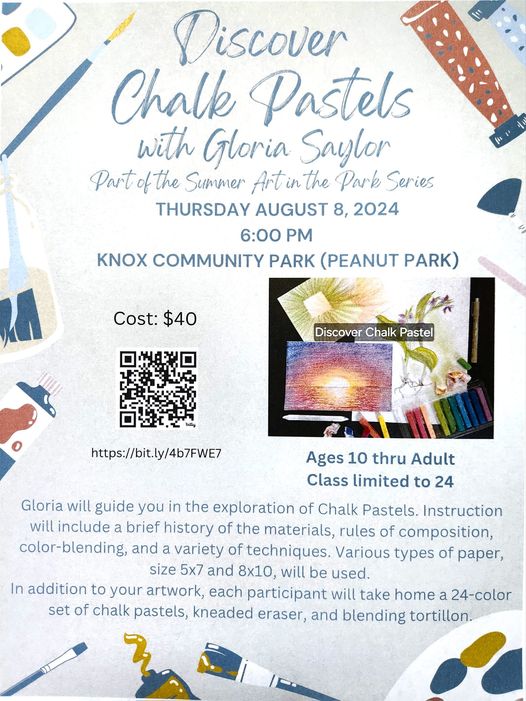 This class is a fundraiser for the Knox Civic Club which owns and maintains the park. The cost is $40. It includes all your materials and snacks!