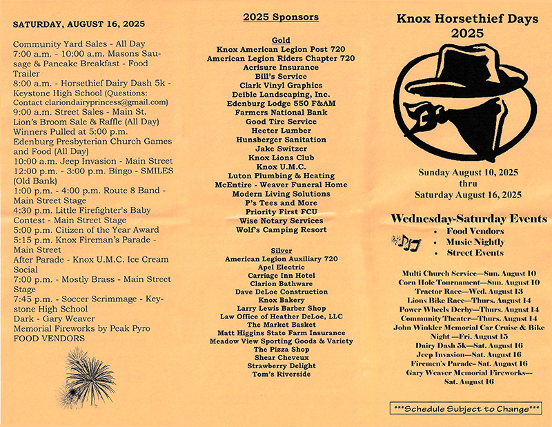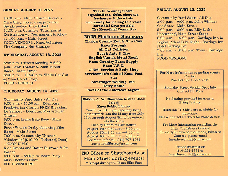 If you would like your event listed, please send it by email to us at knoxpennsylvania@gmail.com.